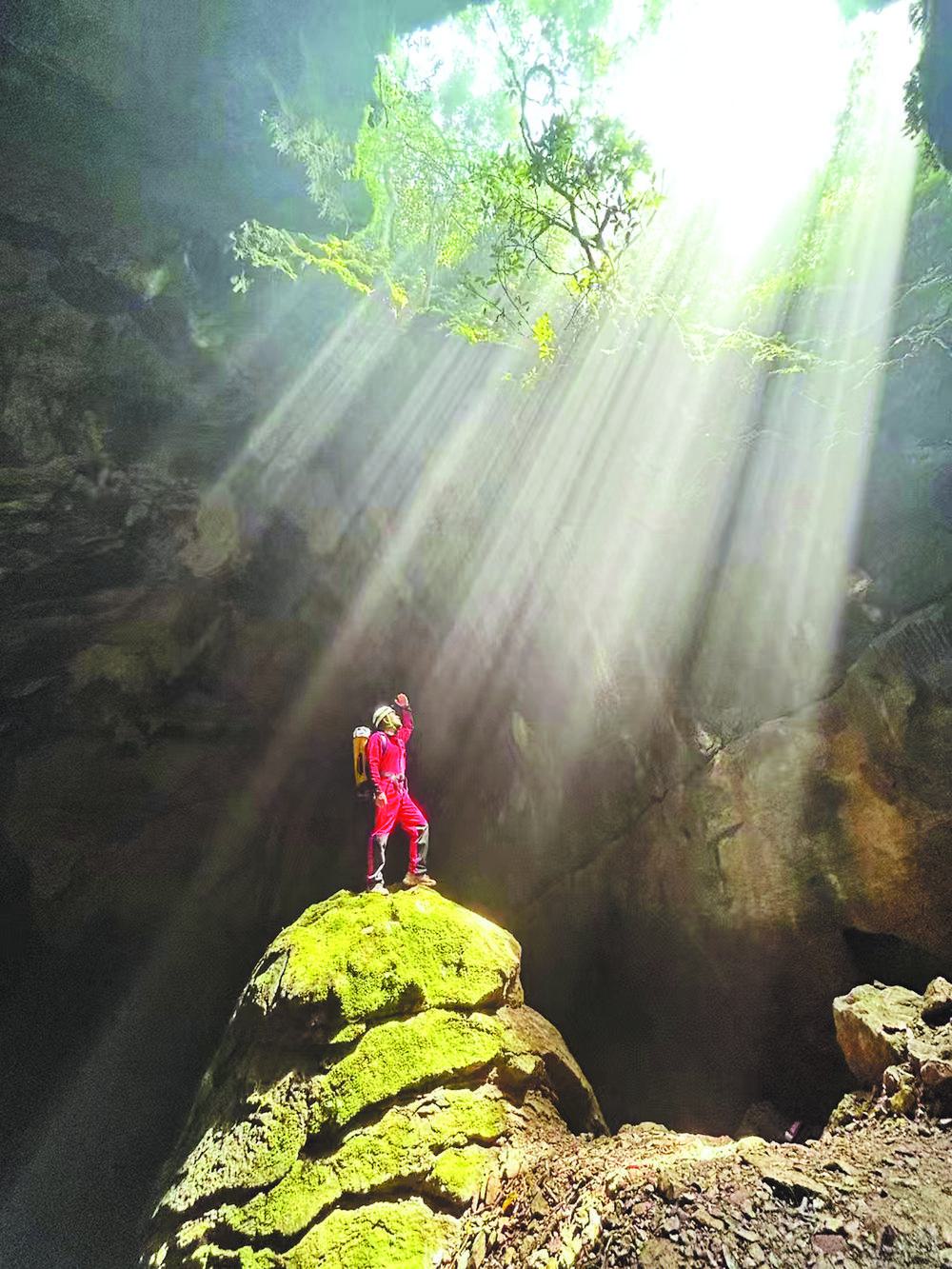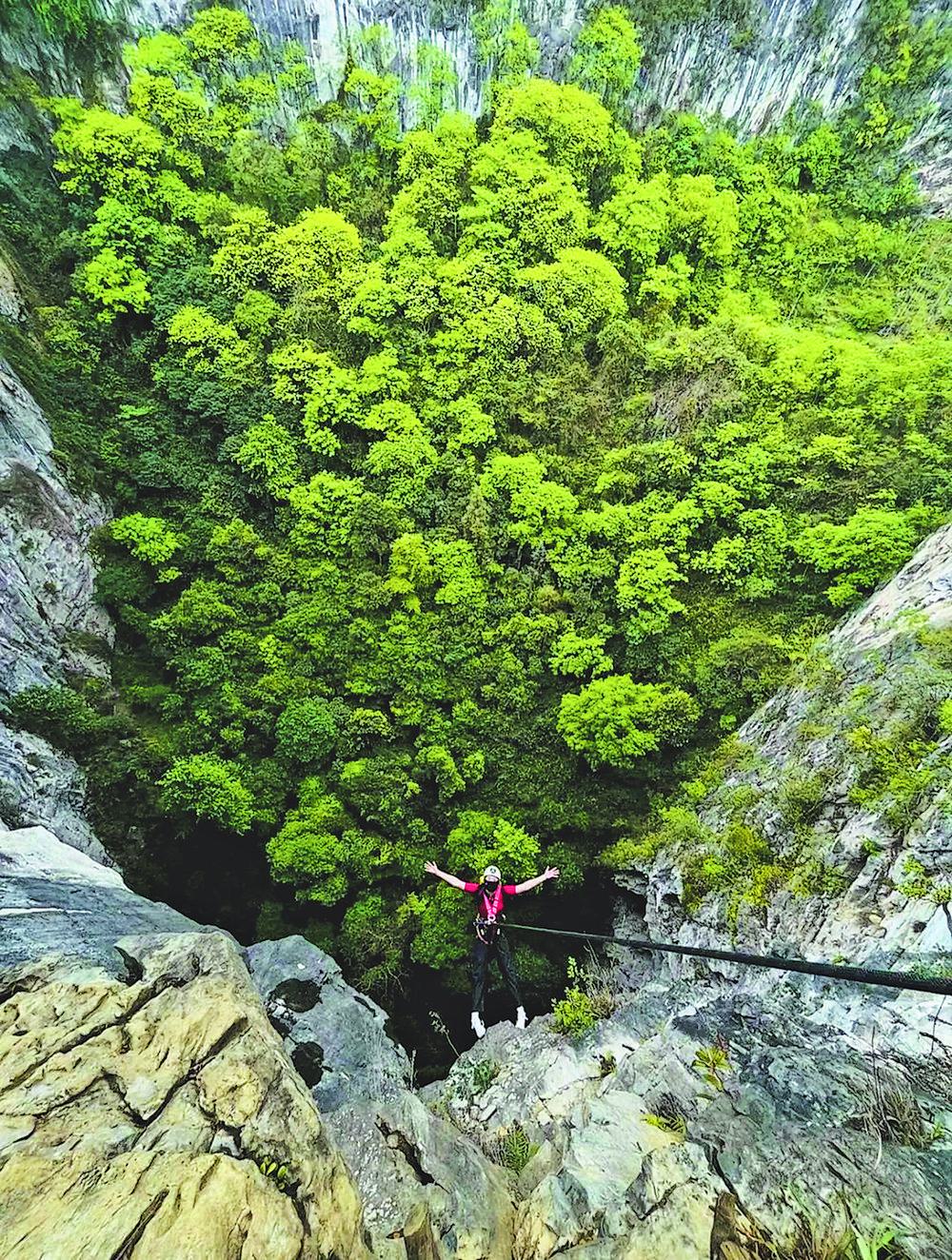 天坑探险。(乐业县文化体育广电和旅游局供图)